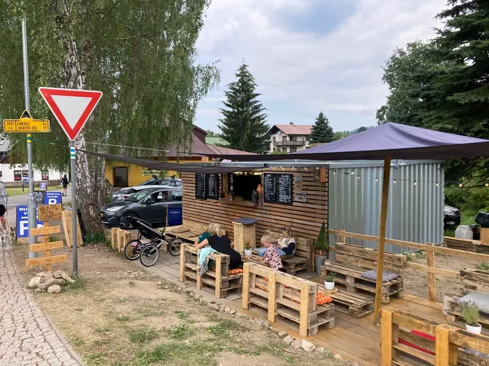Pokud chcete vybočit z klasické restaurace a máte chuť na street food, Bistro pod Mumlavou vás příjemně překvapí. Najdete ho pod autobusovým nádražím – malý kiosek s pár stolečky z palet, který nabízí polévky, sendviče, burgery a dobré kafe.