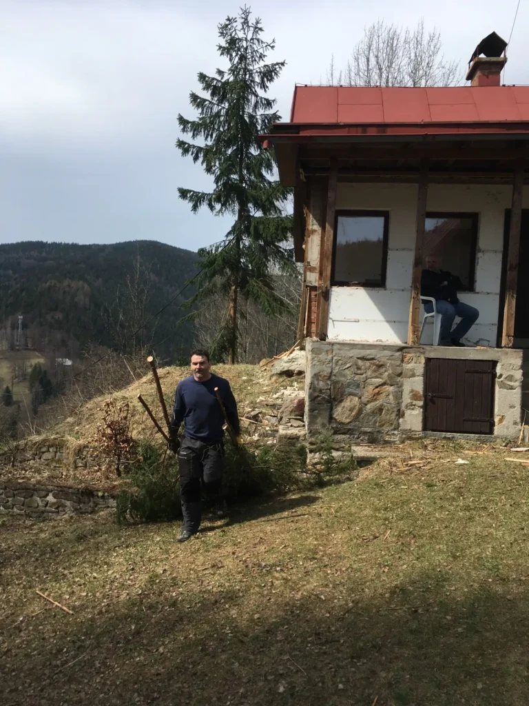 Dnes jsem za veliké pomoci kamaráda Davida zlikvidoval poslední pokácené stromy. Dřeva na topení tam budete mít opravdu hodně 🙂 Ještě ho rozštípat a hezky naskládat k nové chaloupce. Naše chaloupka pomalu, ale jistě mizí a za chvilku zní nezbude vůbec nic. Ale už aby se začalo stavět!!