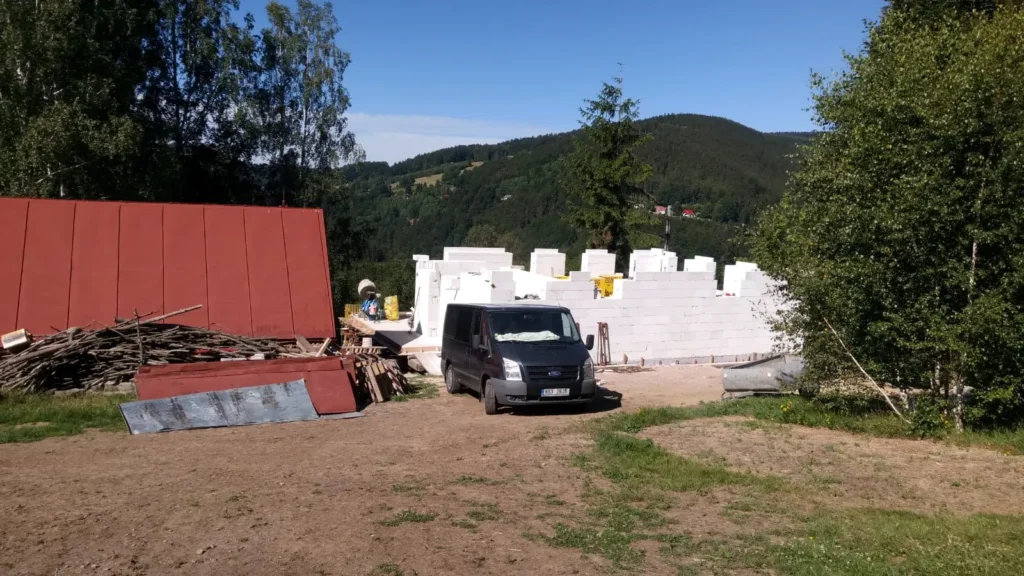 Po dobu naší dovolené se stavba pohnula notně kupředu. I přes problémy s dodávkou materiálu se daří držet tempo a harmonogram. Aktuálně se čeká na dodávku železa, díky které se posuneme do další fáze a to tesařských prací na druhém podlaží. Tak snad se brzo dočkáme a stavba pojede o další patro nahoru.
