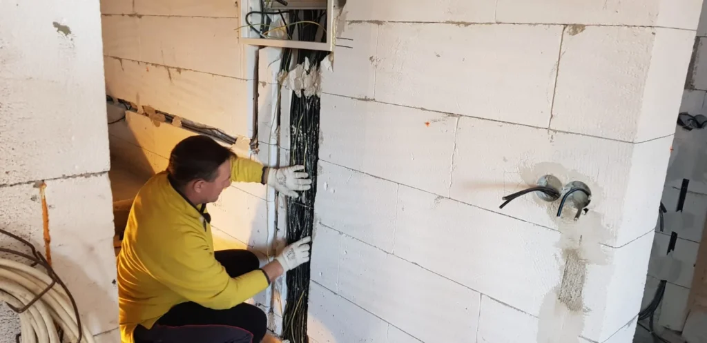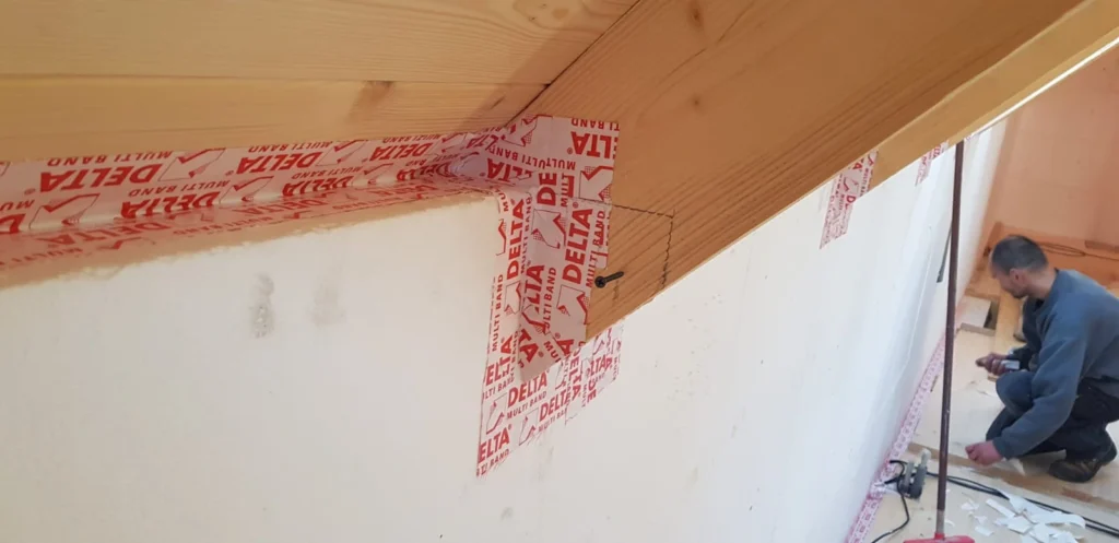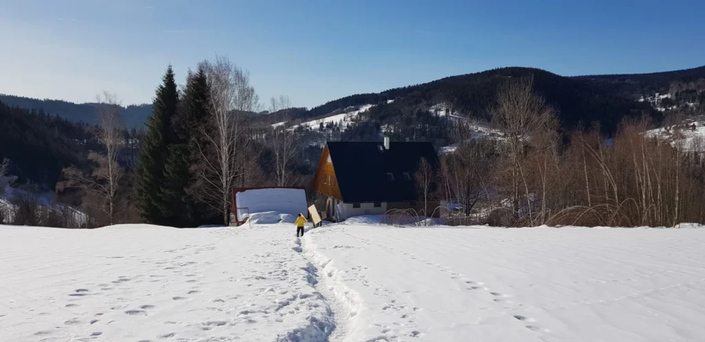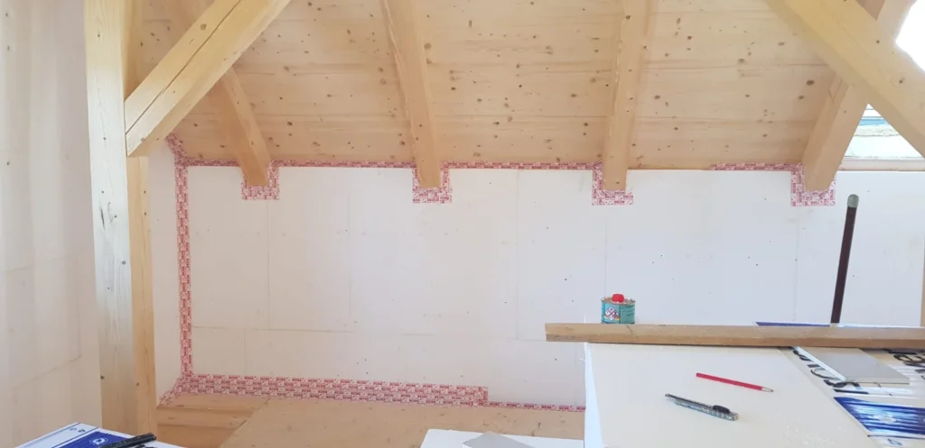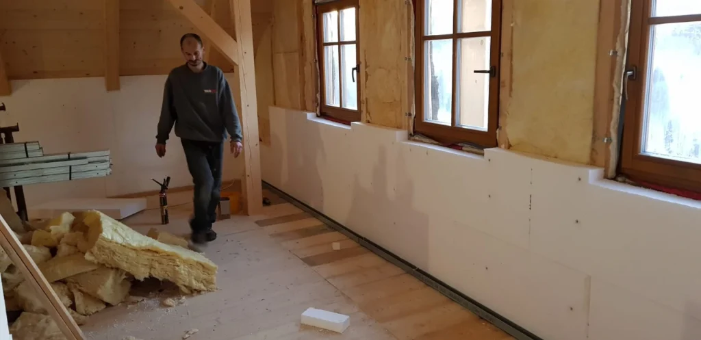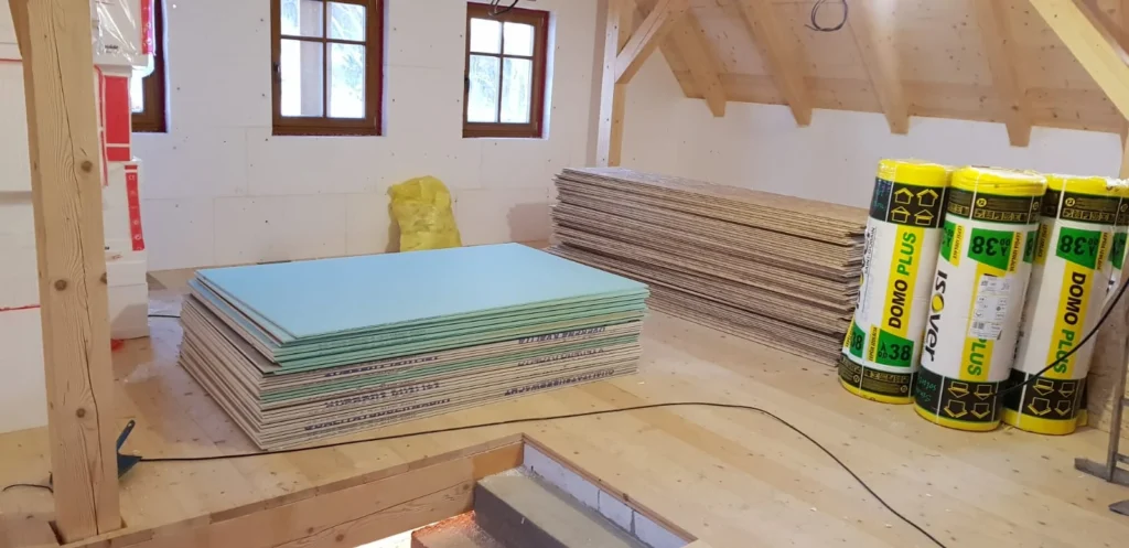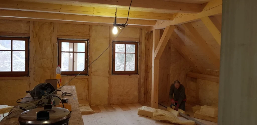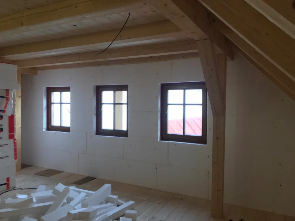 Již během ledna se začalo opět na chaloupce pracovat a to izolací štítů a bočních stěn. Přes 30 cm izolace ve štítech a stěnách bude na horách potřeba a energetická třída „B“ předpovídá, že vám zde zima nebude ani v třeskutých mrazech. Dále pokračovali zednické práce pro přípravu štukování. Už se těším, až se horní patro rozpříčkuje a bude jasný tvar jednotlivých místností.