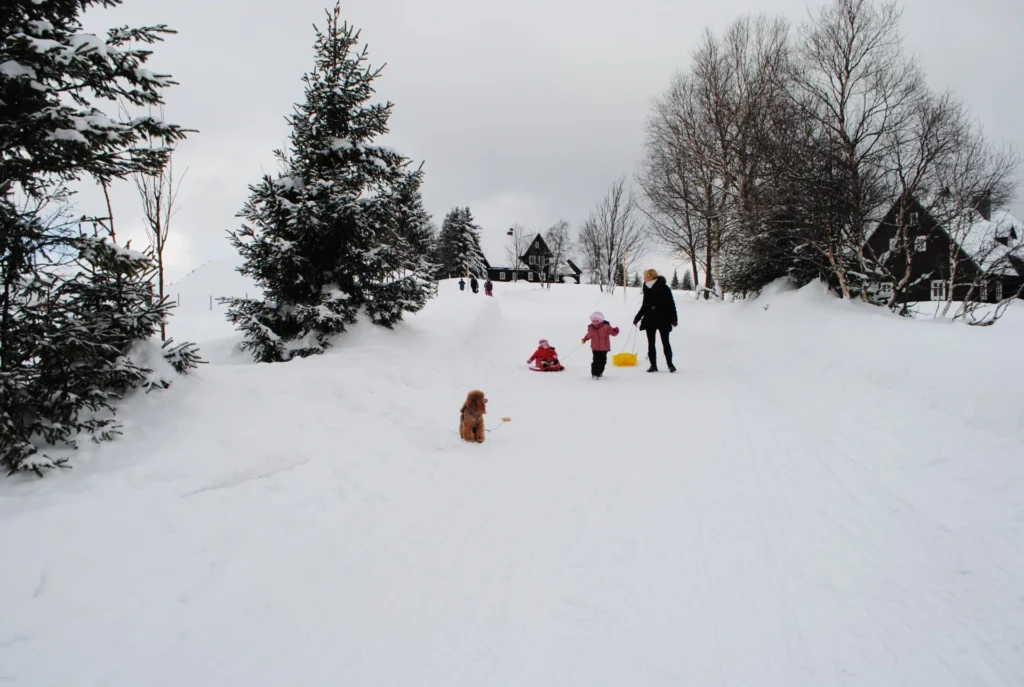 Výlet na Jizerku patří k našim nejoblíbenějším – jezdíme sem i několikrát za sezónu, a to v létě i v zimě. Za pár minut autem dorazíte na parkoviště, odkud vedou různé trasy: buď lesní cestou kolem Bukovce, nebo po asfaltce směrem k hotelu Pyramida a dál až k restauraci Pešákovna.