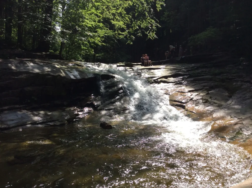 Z parkoviště se vydejte po asfaltové cestě přímo k Liščí boudě. Mají tu skvělé domácí koláče a terasa je přímo nad vodopády. Cesta je široká a nenáročná, po cestě najdete i malé dětské hřiště.