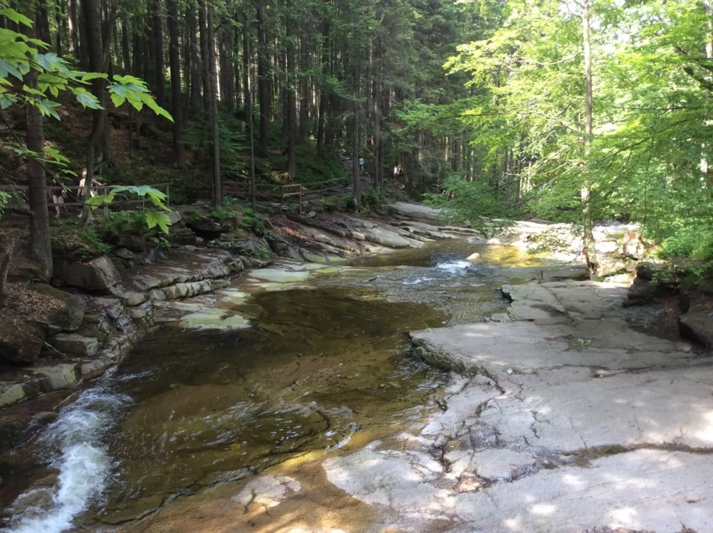 Vydejte se podél řeky až k odbočce na Krakonošovu snídani. Cesta vede stále po asfaltce, takže je vhodná i s kočárkem. Po cestě narazíte na krásná místa u řeky, čertova oka v kamenech a informační tabule. Můžete si tu udělat piknik.