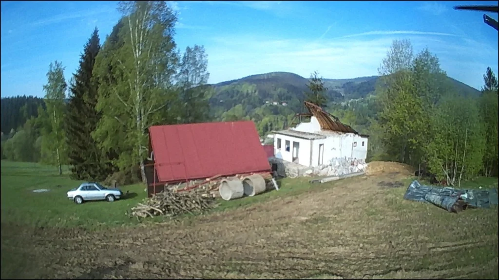 Volný víkend, holky na závodech v Ostravě a já s torzem svých vzpomínek. To byla noc ze soboty na neděli. Když už jsem tam jel tak jsem si cestu zpříjemnil a vytáhl z garáže svého veterána, vzal psa a po obědě v sobotu jsme vyrazili. Bylo krásně a tak jsem se jel podívat co je nového a spálit nějaké větve z kácení stromů. Stavba opět pokročila, tedy spíš demolice nežli stavba. Připravil se nový sloup na přípojku elektro a proběhly první přípravy na zemní práce. Vše vypadá, že pokračuje podle plánu. Pro zedníky jsem sehnal i ubytování ve formě karavanu, takže mají kluci kde přespávat. Už se těším až se začne stavět a ne bourat!