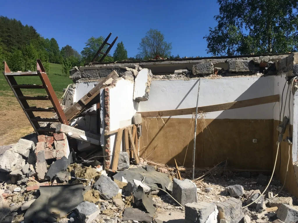 Demolice se díky přepojení elektro přípojky posunula o velký kus dopředu. Z domečku už skoro nic nezbývá jen kvalitně zabetonované schody „do nebe“, které takto kvalitně ukotvil můj táta. Bagr je nedostal ze základové desky a tak musí nastoupit autogen. Jinak se připravuje jáma na umístění zemního filtru k septiku a připojení vody do sklípku. Tento týden se odveze suť a začnou se připravovat nové základové pasy. Už chci mít konečně fázi destrukce za sebou a chci vidět jak roste něco nového. Holky už sedí na místě budoucí terasy a vyhlíží lepší zítřky 🙂